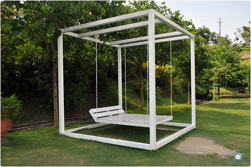 沿著湖面步道走著,主人還放上躺椅讓人累了可以坐下來欣賞湖面風光呢~