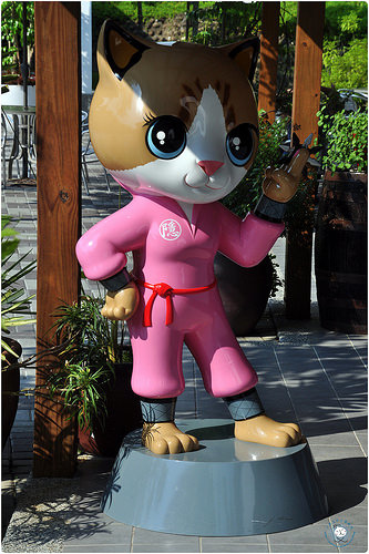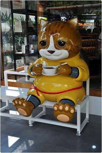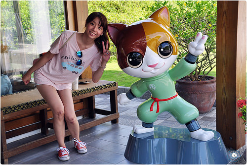 這隻貓因為很可愛,文小編馬上就跟它一起擺Pose拍照囉~