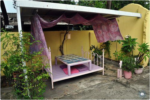 庭院角落還特地規劃一處特別休息區,夜晚在這喝茶聊天一定很棒~