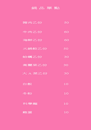 因為現場的價目表拍照起來很不清楚,所以只好借餐廳FB提供的價目表