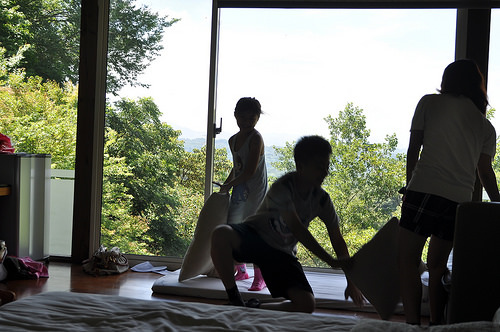 空間很大,可以加到2床唷!! 空間大讓朋友的小孩都玩起枕頭仗了...