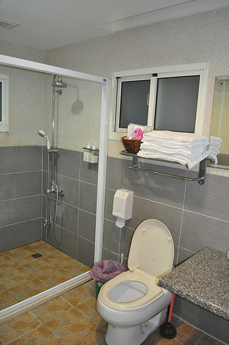 除了蓮蓬頭之外還有花灑,從上向下沖溫水...真是舒暢!!