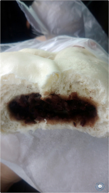 包子裡頭包著芋泥跟紅豆泥餡料,口感甜而不膩,芋香跟紅豆香撲鼻而來,