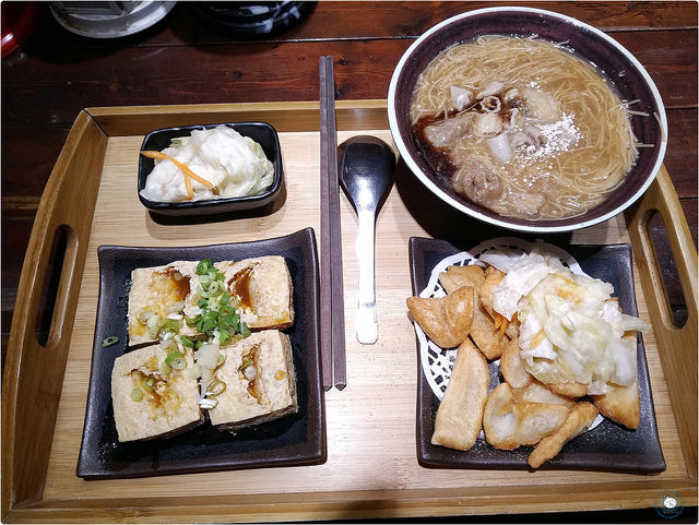 一口臭豆腐一口泡菜,口感不錯,份量小塊了點~