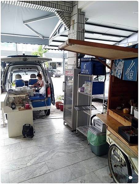 這台麵包車就是行動廚房啦,所有的配料都是在這個餐車上面處理的。