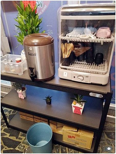 餐具以及調味料區,提供的飲水是檸檬冰水,還蠻不錯的。