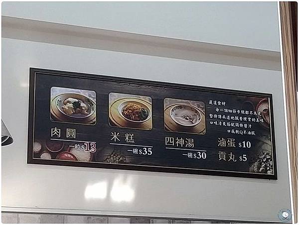 張記肉圓的菜單非常簡單,只有肉圓/米糕/四神湯/滷蛋/貢丸。