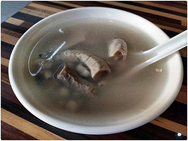 四神湯是店家每天採用了大骨熬煮四小時,湯底熬煮出淡淡的乳白色,清香而不膩,