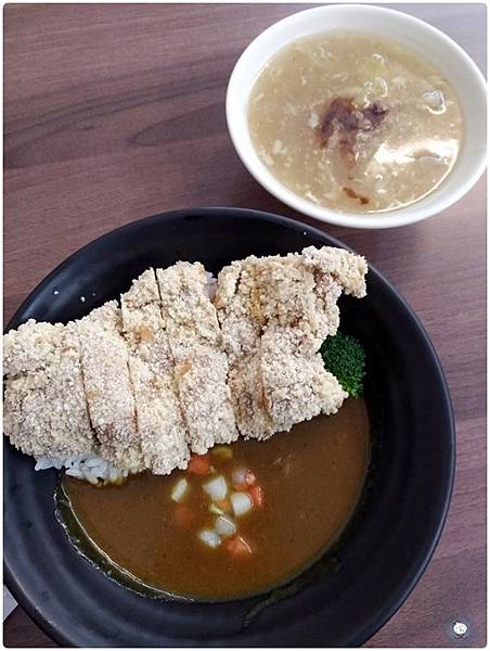 厚實的雞腿排搭配自製的咖哩醬汁,咖哩味道還算香醇,