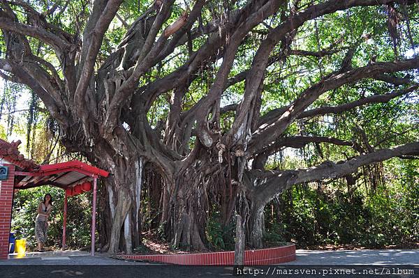 我們騎去白燈塔前,在岔路口有指示牌寫著旁邊就是--百年榕樹,