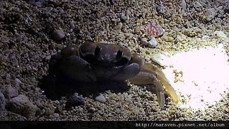 仔細的看...還有具保護色的陸蟹正橫行在沙灘上...