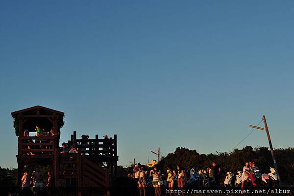 攝影玩家架起腳架搶拍而遊客們則聊著天一同迎接夕陽的到來。